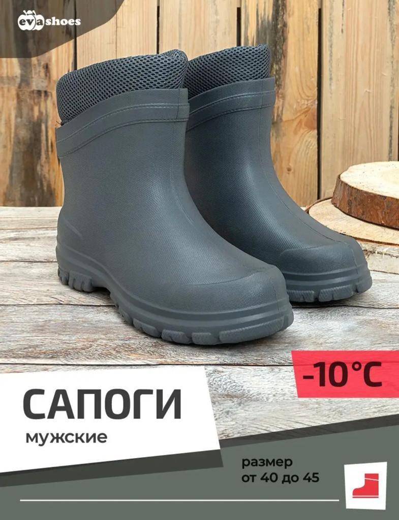 Сапоги выполнены из высокотехнологичного материала ЭВА (этилвинилацетат). Необычайно легкие и комфортные. Предназначены для холодных условий эксплуатации (до -10С). В комплекте сьемный утеплитель . Цвет: серый, болотный. Размерный ряд:41-47.